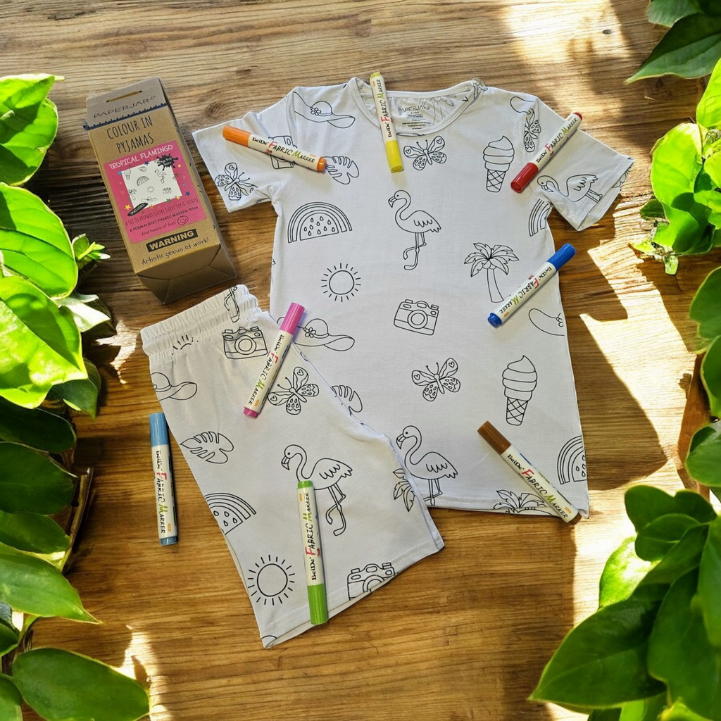 Let your little one's creativity shine with this fun Summer themed colouring set of pyjamas!