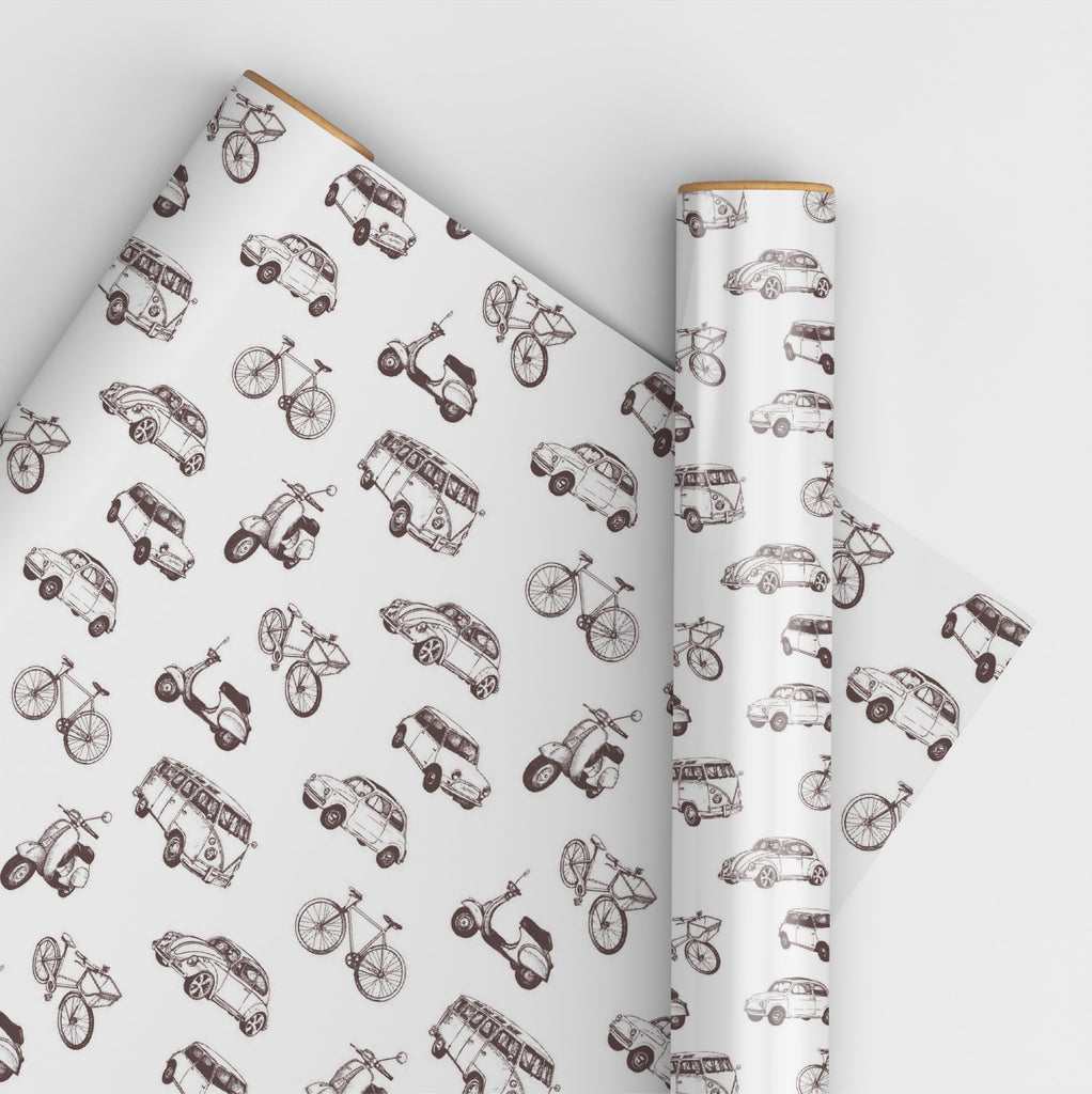 Our beautifully printed wrapping paper comes in a roll 70cm x 3 metres. All our designs are printed on uncoated 100% recycled white kraft paper.